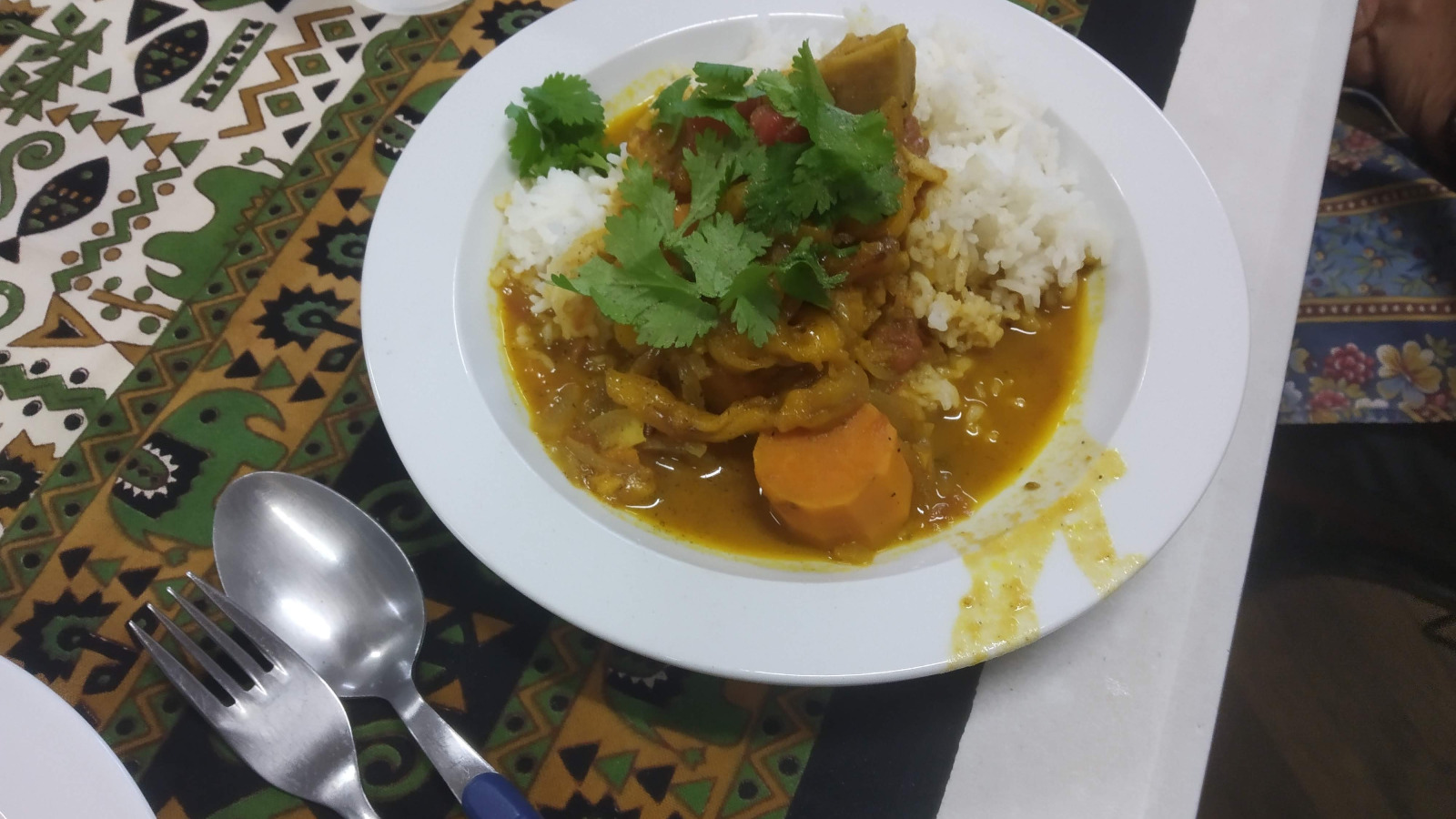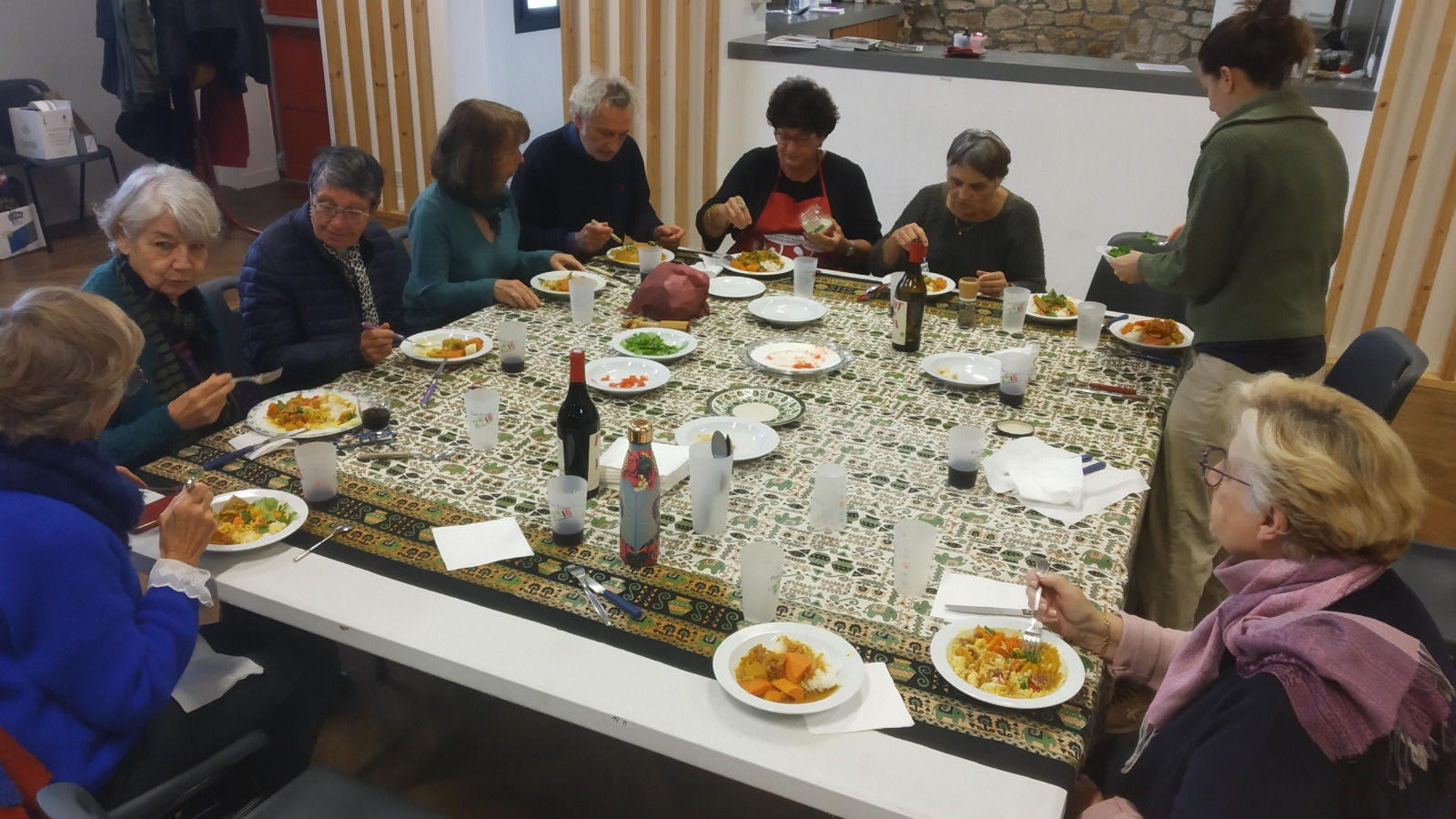Accompagnée d' Albane, elle nous offre un cari calédonien de patates douces au jaquier - parfumé de citronnelle et gingembre ( végan ) et un po'e bananes .